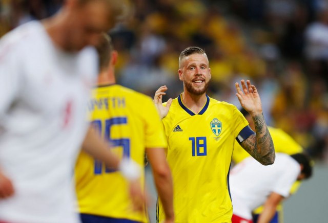 Defanzivac Švedske Pontus Janson sklopio je šake u obliku albanskog dvoglavog orla pred meč Švedske i Švajcarske u osmini finala Svetskog prvenstva u Rusiji.