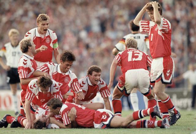 Verovatno najpopularnije iznenađenje na ovim prostorima. Danci su "upali" na EURO zbog izbacivanja Jugoslavije zbog građanskog rata, spremali su se samo sedam dana, igrali bez svog najboljeg fudbalera Mihaela Laudrupa, a onda ušli u legendu. U polufinalu su na penale eliminisali branioca titule Holandiju, a u finalu prvaka sveta Nemačku.