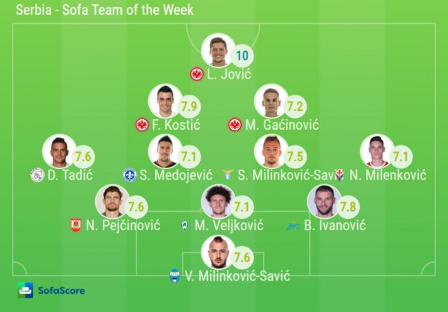 Najbolji igrač Srbije Dušan Tadić nastavio je sa golovima u dresu Ajaksa, opet je bio siguran sa penala, dok se u Bundesligi razigrao Filip Kostić koji je dva puta asistirao u impresivnoj pobedi Ajntrahta (7:1).