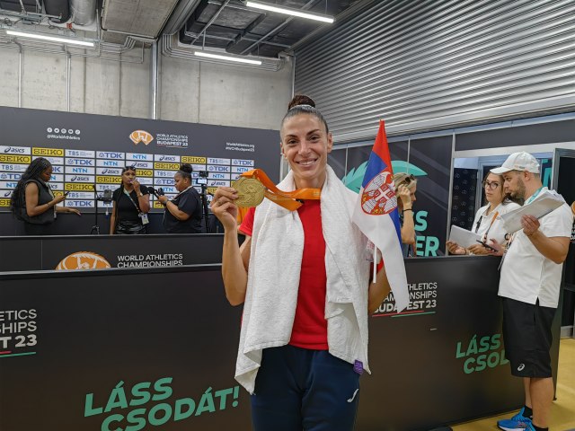 "Obećala sam i to sam i uradila", rekla je Ivana Vuleta novinarima kroz osmeh po dolasku u miks zonu sat kasnije pošto je na SP preskočila neverovatnih 7,14 m.