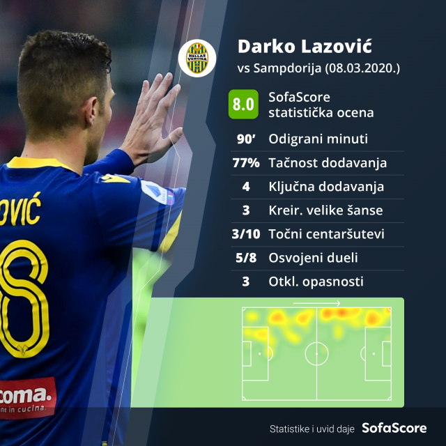 Darko Lazović (Verona) – odličan u porazu od Sampdorije (2:1), upisao i asistenciju sa kapitenskom trakom