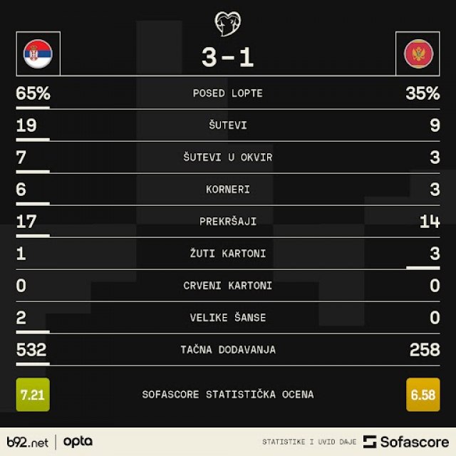 Kako god, "orlovi" ipak završavaju oktobarski "prozor" uzdignuta čela i obavljenog posla. Ono o čemu smo pisali i pre meča sa Mađarskom – Crna Gora je bila taj momenat istine i izabranici Dragana Stojkovića su se pokazali u dobrom svetlu, ali su prošli kroz "sito i rešeto" da bi došli do krajnjeg cilja.