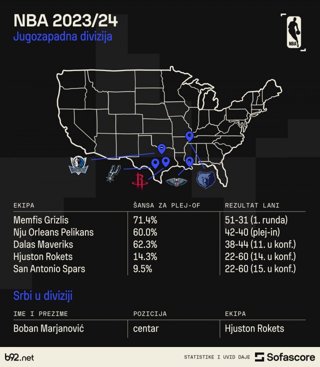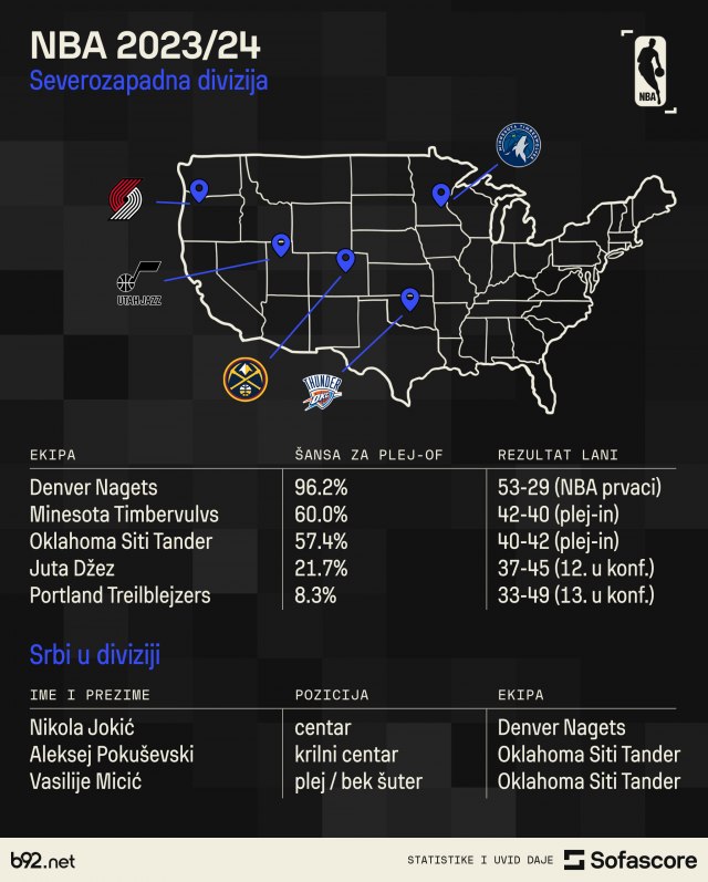 Nova NBA sezona kuca na vrata, a pred vama je najava Zapadne konferencije u kojoj igraju četvorica srpskih košarkaša – Nikola Jokić (Denver), Vasilije Micić (Oklahoma), Aleksej Pokuševski (Oklahoma) i Boban Marjanović (Hjuston).
