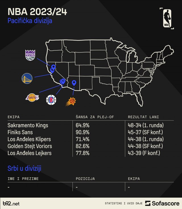 A, ispred su i Sakramento Kingsi, makar u regularnom delu. Razmišljali smo možda da ih stavimo i na prvo mesto, ali ono je ipak rezervisano za Denver Nagetse.
