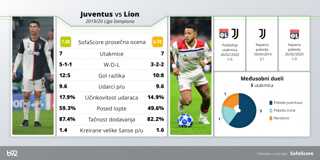 Na "Alijanc stadionu" revanš utakmicu odigraće Juventus i Lion, a francuska ekipa na megdan stiže sa prednošću koju su stekli na svom terenu pre pet meseci (1:0).