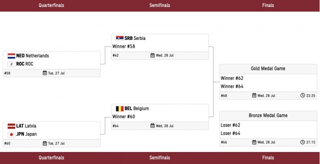 Četvrtfinale igraju selekcije od trećeg do šestog mesta, a rival Srbije u polufinalu biće bolji iz duela četvrtoplasiranog (Holandije) i petoplasiranog (Rusije).