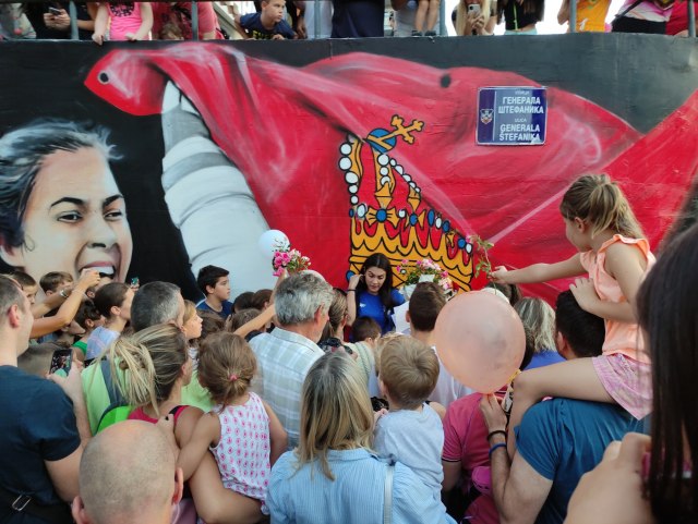 Po povratku u Beograd dočekao je mural u njenom naselju "Stepa Stepanović" na Voždovcu, gde su je deca "opkolila" pa je više od sat vremena delila autograme i slikala se sa najmlađim komšijama.