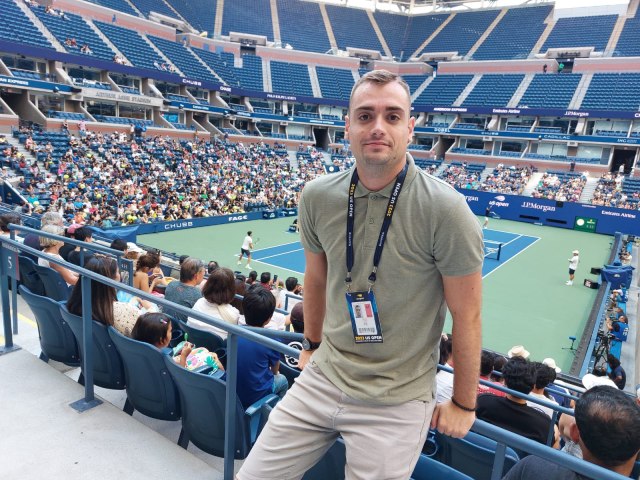 Uglavnom, raštrkani smo po Medija centru, a ja sam imao tu "sreću" da me bace među Špance, koji u skladu sa rivalstvom Đokovića i Nadala, odnosno Alkarasa, imaju nešto defanzivniji stav prema nama.