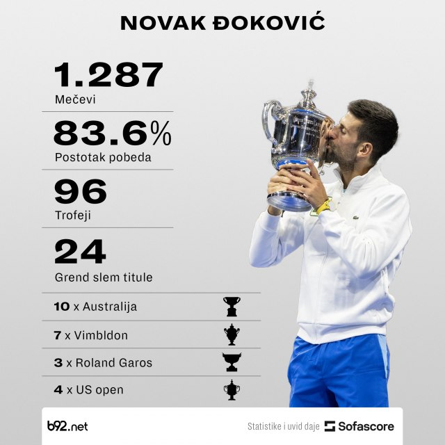 Za kraj, ističe se da je Đoković u nedelju uveče odigrao čak 36 grend slem finale, Federer ih ima 31, a Nadal 30.