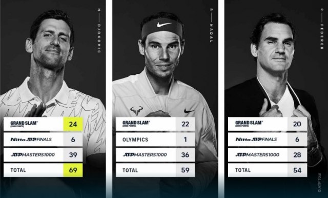 Posebno se dodaje da je Đoković u međusobnom skoru bolji od dvojice najvećih rivala. Protiv Nadala ima skor 30:29, a protiv Federera 27:23.