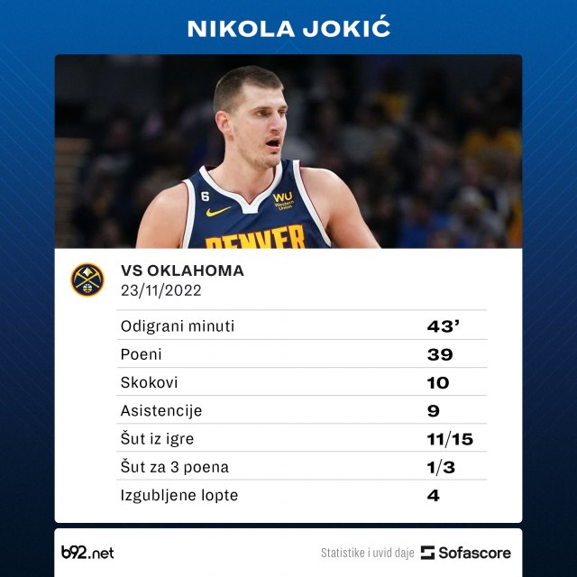 U dodatnom periodu Jokić asistira za dva koša Nagetsa, a potom osam sekundi pre kraja sa dva penala stavlja tačku na meč.