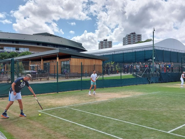 Malo je kasnio u odnosu na satnicu, ali je na terenu broj 7 radio punom parom, razmenjujući udarce sa Čarlijem Gomesom, pod budnim okom Gorana Ivaniševića.