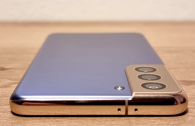To dolazimo i do plastike kao jedne od ključnih različitosti između Ultre i "običnog" S21. S21 pozadi je plastičan, što bi u Samsungovom slučaju moglo da bude trenutak za oprez (setite se svih plastičnih egzibicija od pre koju godinu), međutim, izbor je u ovom slučaju dobro sproveden u delo. Matirana plastika je kvalitetna, sa jedne strane jeste jeftinija od stakla na Ultri, ali je sa druge strane otpornija na padove. "Fantomski" crna boja na koju je Samsung potrošio dosta vremena na predstavljanju jeste odlična i dobro čuva nijansu bez obzira na svetlo, pa ako baš volite "pravu" mat crnu boju, Ultra je jedini izbor.