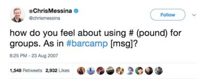 Na današnji dan pre 11 godina, Kris Mesnia (@chrismessina) tvitovao je hešteg #barcamp. Bio je to prvi hešteg ikada upotrebljen na Twitteru.