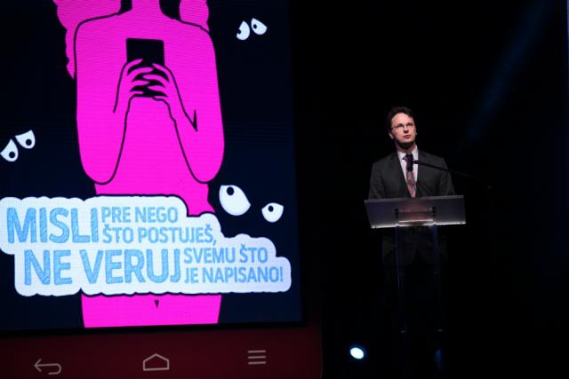 Veliki broj zvezda iz sveta muzike, televizije i sporta, među kojima i Ajs Nigrutin i mlade YouTube zvezde „Yasserstain“ kroz muziku i skečeve upoznali su učenike petog i šestog razreda osnovnih škola iz Beograda na koji način da budu sigurni onlajn. Misli pre nego što postuješ, ne veruj svemu što je napisano, bila je glavna parola i pesma događaja koji su vodili pevačica Sara Jovanović i glumac Bojan Ivković. Oni su, zajedno sa drugim učesnicima, deci pričali o „lajkovanju“, „emotikonima“ i drugim pojmovima iz Sajber bukvara namenjenog najmlađim korisnicima društvenih mreža.