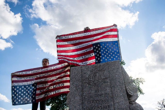 Usledili su protesti na paradi povodom Kolumbovog dana, koji se obeležava na današnji dan. Pokrenuti su napori da se on eliminiše iz učionica i ali pozivi za promenu saveznog praznika.