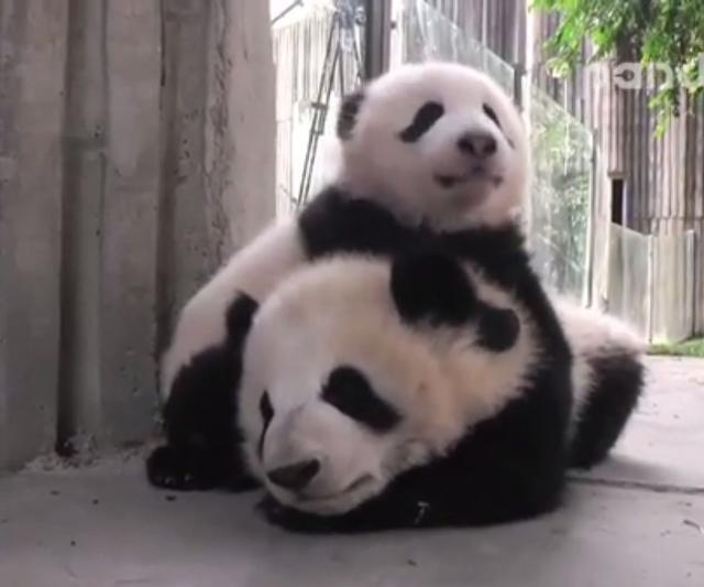 Na video snimku, koji je zabeležen u jednom svetilištu u Kini, vidi se kako panda Meng lan uživa u opuštajućoj masaži koju joj je priredio njegov mali prijatelj, beba panda Ćing Sjao.