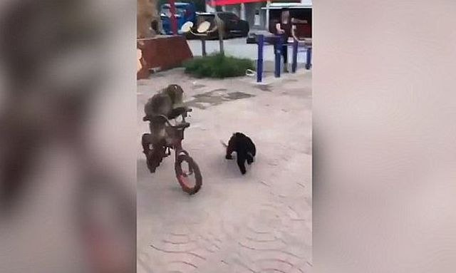 Ovako izgleda kada majmun vozi bicikl, a još ga juri pas / VIDEO