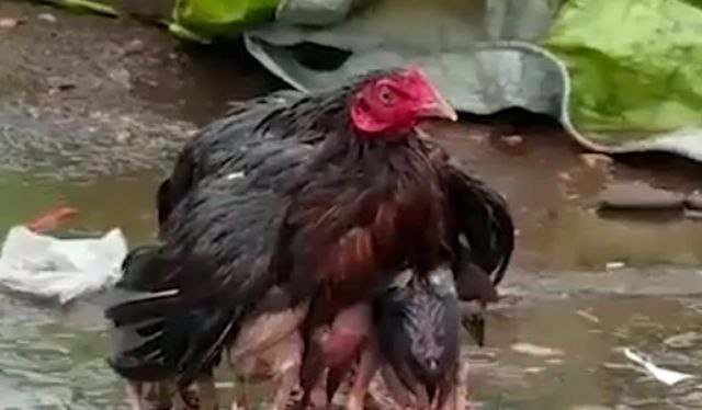 "Ovaj video-snimak snimljen je na lokalnoj pijaci dok je padala jaka kiša, a možemo da vidimo pravu majčinsku ljubav. Kokoška štiti svoje piliće u jakoj kiši", kazao je autor ovog predivnog snimka.