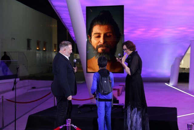 Svi posetioci Paviljona Srbije na svetskoj izložbi "Expo 2020 Dubai" večeras su imali jedinstvenu priliku da budu prvi ljudi u svetu koji su uspostavili interakciju sa našim pretkom, koji je zaista živeo pre 10.000 godina na obalama Dunava, u Srbiji.