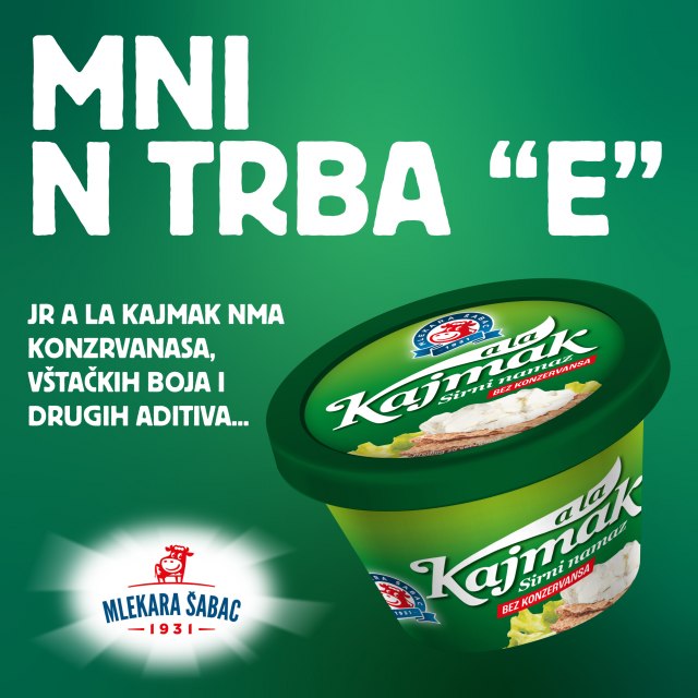 Kada zaista brinemo o onome što kroz hranu unosimo u svoj organizam, onda naš izbor treba da se fokusira na proizvode dobijene od prirodnih sastojaka, bez konzervansa, veštačkih boja i drugih aditiva. Takve proizvode je mnogo lakše naći nego što mislimo, a u njih spadaju i namazi Mlekare Šabac – A la Kajmak namaz i Sirko. Ovi namazi autentičnog ukusa napravljeni su po tradicionalnoj recepturi i od najkvalitetnijeg mleka sa domaćih farmi. Savremene tehnologije proizvodnje Mlekare Šabac garantuju da će dobijeni sirni ili kajmak namazi od punomasnog mleka, biti 100% bazirani na prirodnim sastojcima i da nemaju konzervanse i druge aditive, da bi duže opstali na policama i zadržali svoj kvalitet, ukus i kremastu strukturu – po čemu su generacijama prepoznatljivi i omiljeni brendovi.