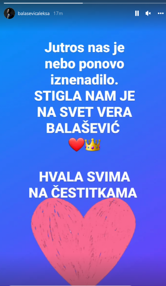 Aleksa Balašević i njegova trudna supruga Nikolina venčali su se u Hramu Svetog Save u junu, a svadbu je trebalo da prave u subotu 25. juna u Sremskim Karlovcima, ali par je iz privatnih razloga odložio proslavu za septembar. Balašević i Nikolina su godinama zajedno, a on ju je zaprosio u Izraelu, za šta je dugo čekao dozvolu. Crkveno ih je venčao patrijarh Porfirije.