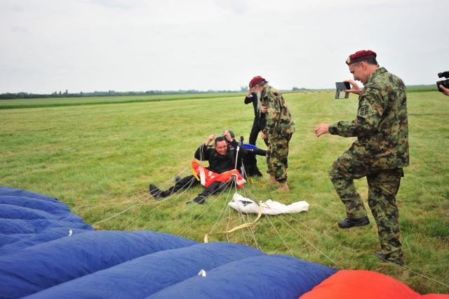Majci palog borca Jovanki Ostojić godine nisu smetale da iskoči iz aviona sa 3.000 metara, a po doskoku rekla je da je to njen drugi skok, kao i da je zvanični rekorder Evrope, zbog visinskog stuba i svojih godina.