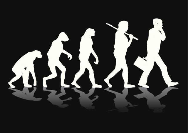Ideja da su ljudi evoluirali od nekog primata i ostavili svoje srodnike šimpanze u darvinističkoj prašini oslikana je u čuvenoj slici “Uspon čoveka”.