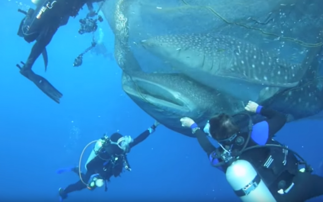 Četiri kit ajkule spasli su ronioci nakon što su se zaplele u ribarske mreže.