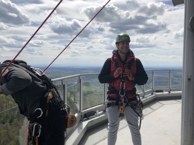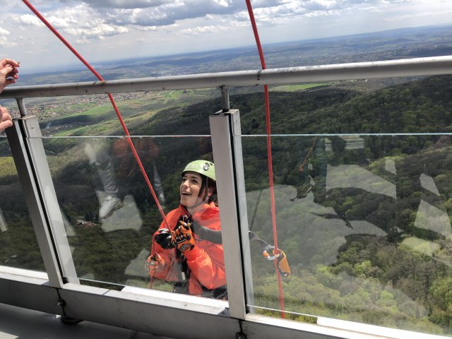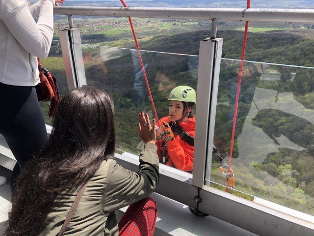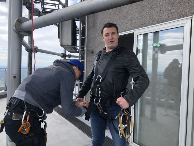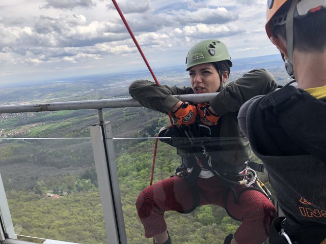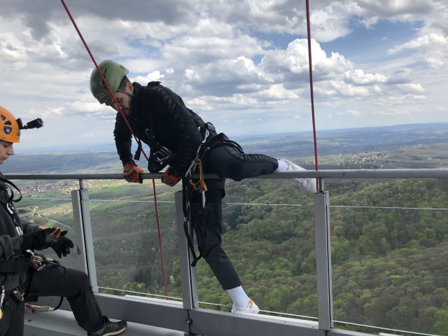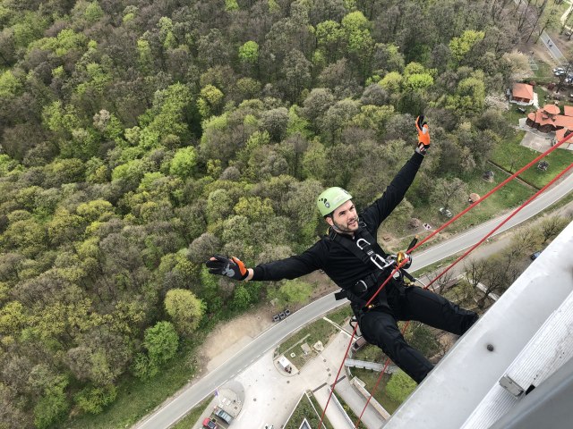 Iako je vreme poslednjih dana u Srbiji bilo prikladnije oktobru nego aprilu, pravi prolećni dan desio se pri ovom adrenalinskom poduhvatu, kojim je u četvrtak proslavljen rođendan Avalskog tornja. Znamo da je sa vrha Avale pogled od kog zastaje dah, ali kada treba da se spustite sa njega... Konopcem... To se dogodi i najbukvalnije u šta smo se uverili.