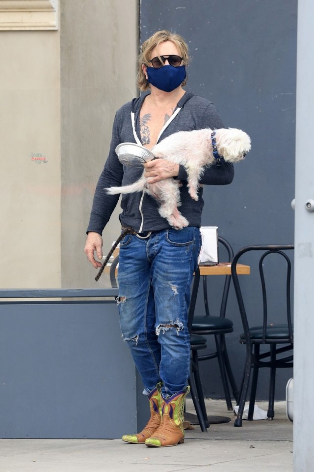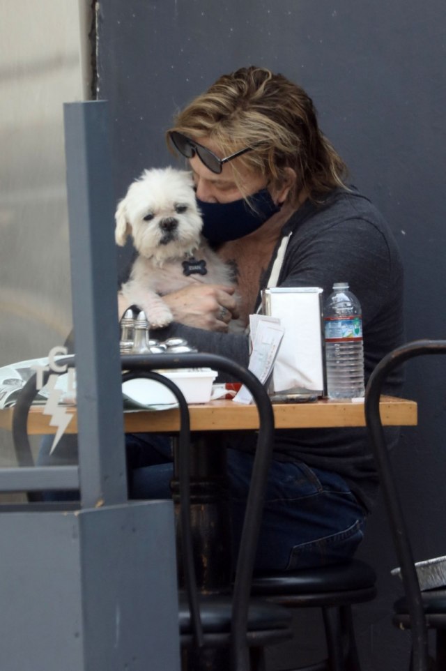 Glumac Miki Rurk viđen je u javnosti na ručku sa prijateljem na Beverli Hilsu, ali nije krio koliko voli četvoronožnog člana svoje porodice koji se zove Kralj Karlos.