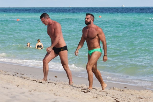 Velški glumac kupao se i potom šetao po plaži s 11 godina mlađim partnerom Franom, a pažnju su privukli svojim mišićavim i isklesanim telima i nije im preterano smetalo što su ih paparaci fotografisali.