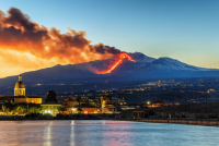 Turisti koji letuju na Siciliji su sa plaže posmatrali zastrašujuće prizore erupcije Etne.