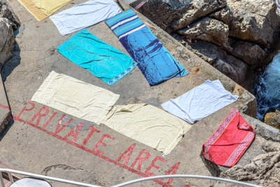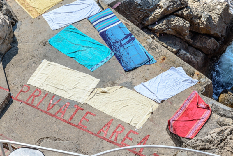 Na nekim lokacijama gomilaju se desetine peškira, prostirki pa čak i privatnih ležaljki, zbog čega je gotovo nemoguće pronaći slobodno mesto za postavljanje peškira tokom jutra.