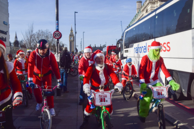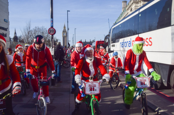 Cyclists dressed as Santa Claus and the Grinch took part in an annual charity ride called 'Santa Cruise' to raise funds for Evelina Children's Hospital Heart Organisation in London, Britain, on December 13, 2025.