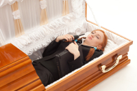 Japanski "Sanduk kafe" (Coffin cafe) reklamira se tako što nudi jedinstveno iskustvo za razmišljanje o životu i smrtnosti, a predstavljen je javnosti u septembru, i smešten je na prvom spratu glavne zgrade pogrebnog zavoda.