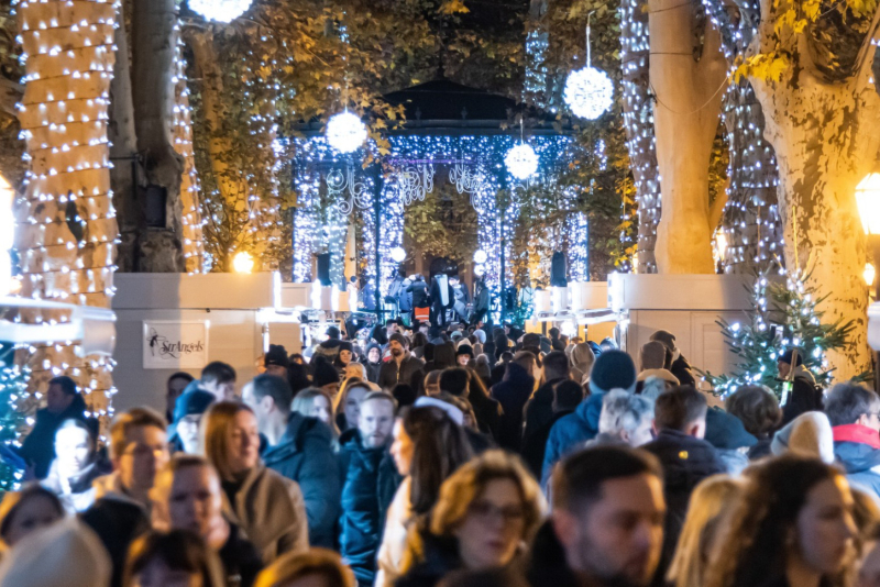 Šetnja vas tako vodi u park Zrinjevac pravi izbor za ljubitelje umetnosti, ručnih radova i muzike. Mogu se kupiti rukotvorine i jedinstveni suveniri, ali i uživati u notama različitih muzičara koji nastupaju na svetlucavou prazničnoj bini.