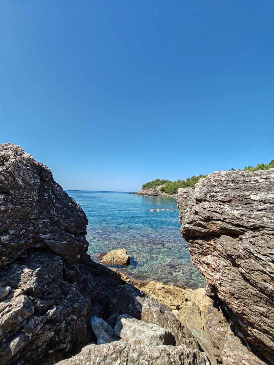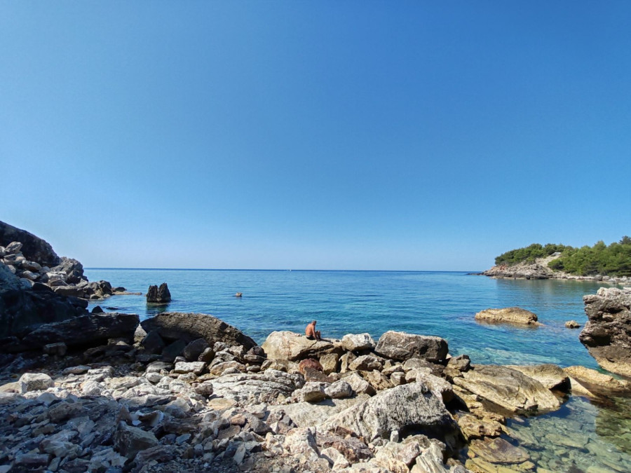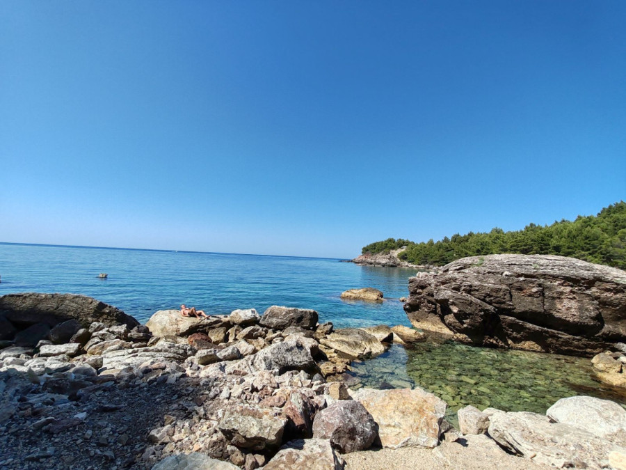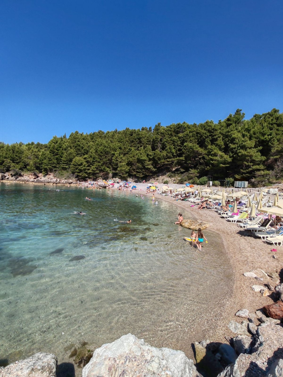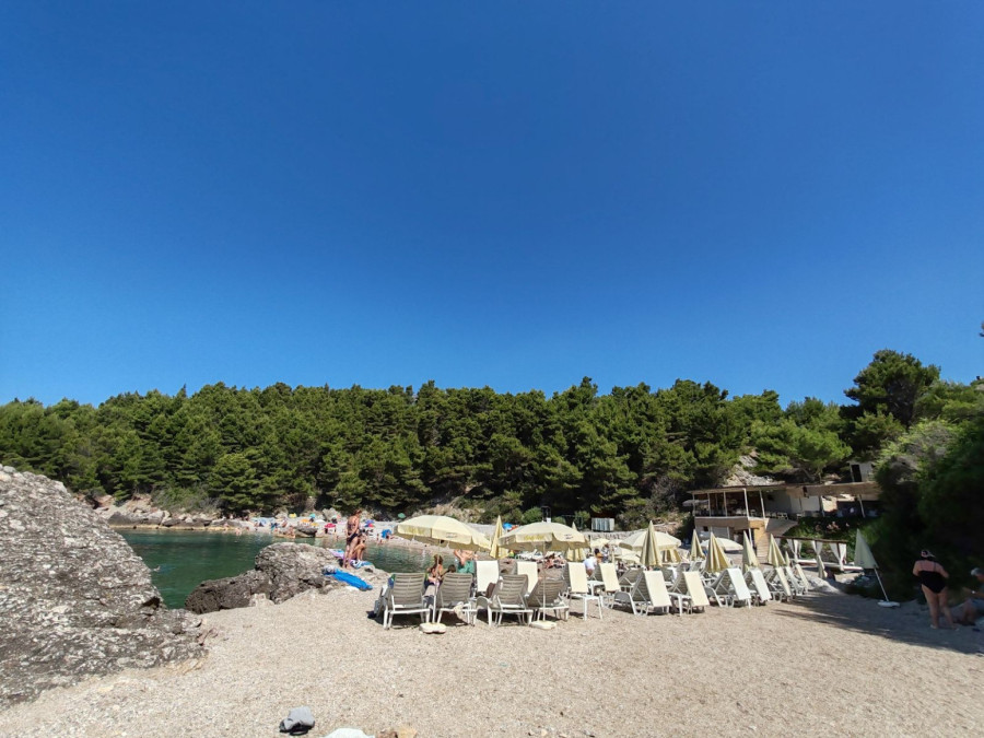Takođe, tu je još jedna mala plaža Štrbine, koja je urbanija. Takođe ima jedan kafić ali veći, koji nudi komplet ležaljki za samo 10 evra. Tu možete naručiti hranu i piće, sedeti u kafiću ili na plaži, a sigurni smo da će vas mir, priroda, lepota i čistoća mora i pogled očarati.