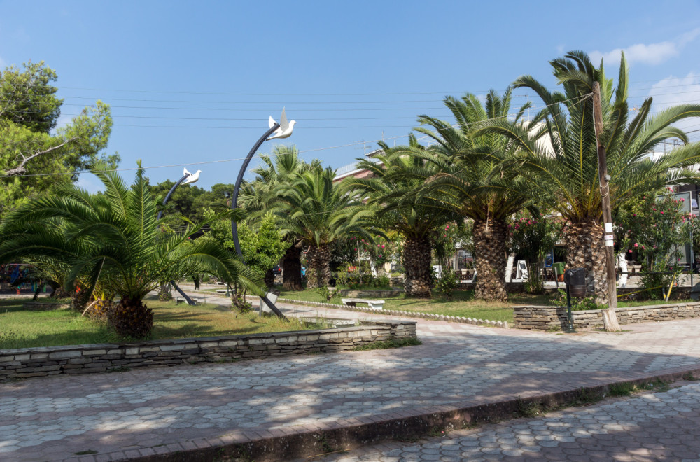 Nikiti je udaljen 7 kilometara, a do administrativnog centra Poligiros ima 30-ak kilometara. Po lokaciji je idealan za obilazak oba kraka na Halkidikiju, a od Soluna je udaljen svega 100 kilometra.