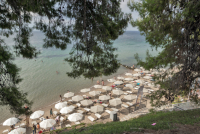 Plaža je uska, sa prirodnim hladom u pojedinim delovima, peskom i šljunkom na obali, odnosno šljunkom ili peskom u vodi. Ne ubraja se među najlepše na Sitoniji, ali je pristojna. More je kristalno čisto.