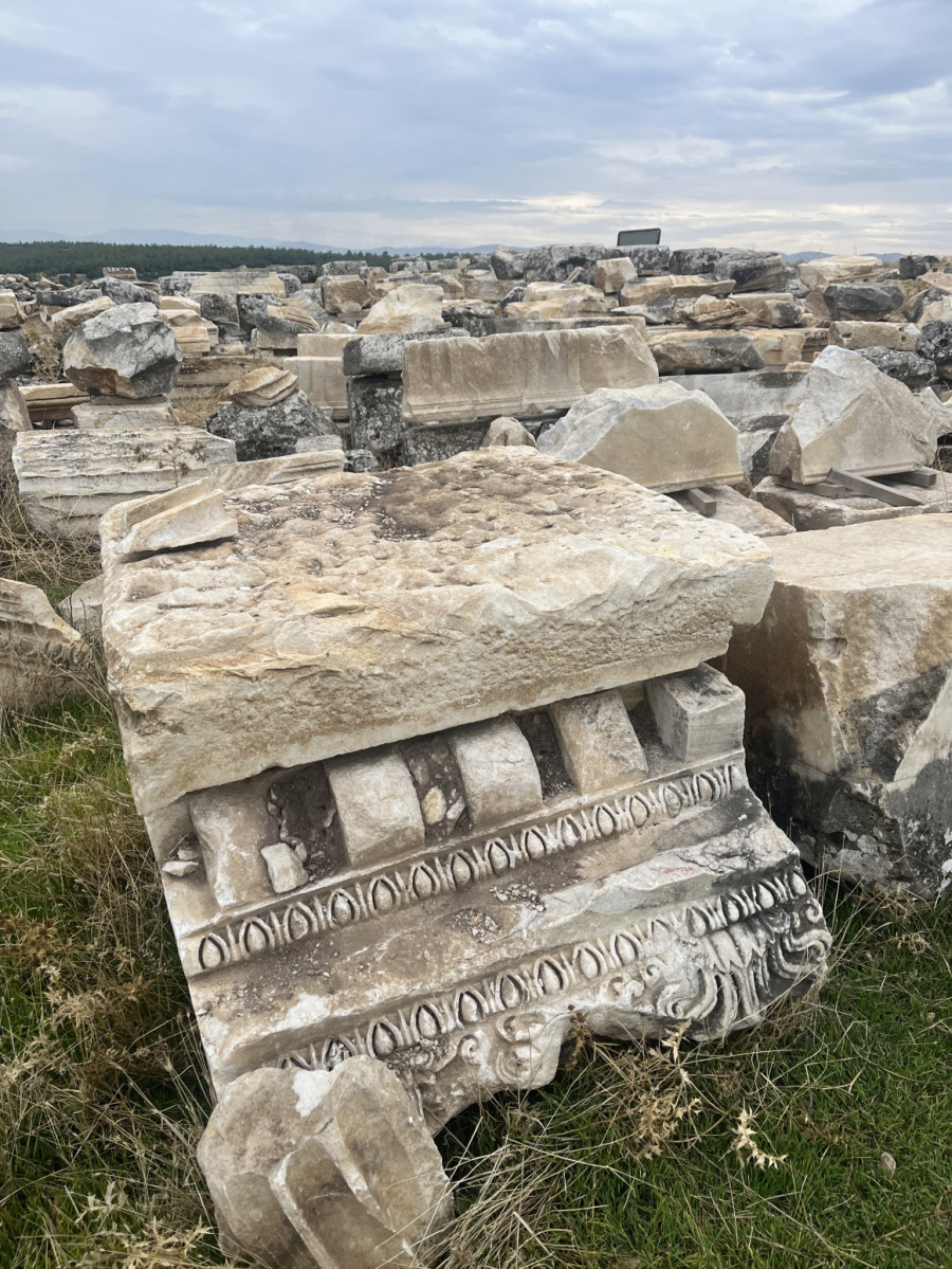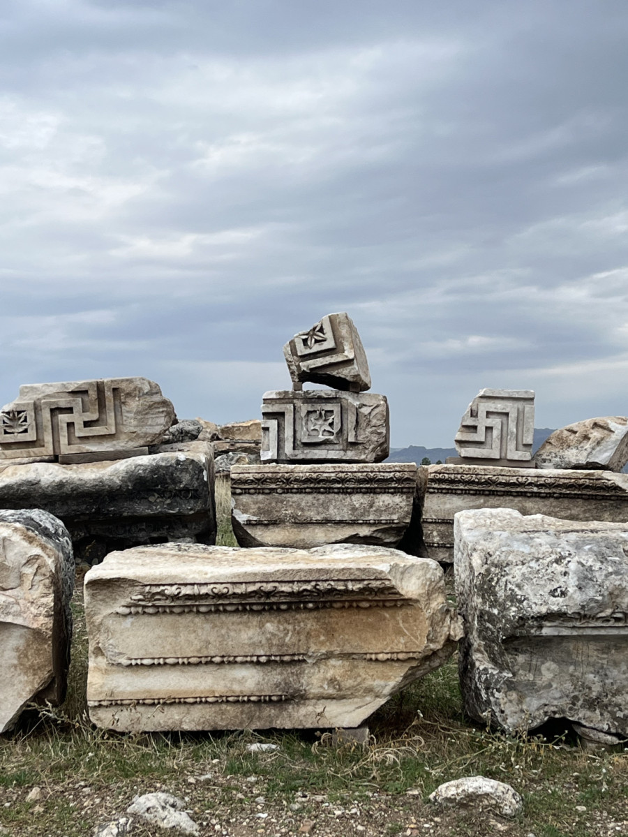 Među bitnim strukturama drevnog grada su stadion, zamak, pozorište, hramovi i kamene grobnice. Trenutne ruševine grada su: