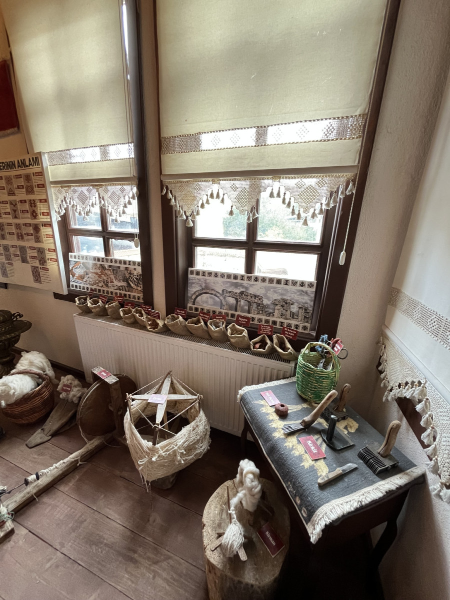 Pored više od 3.000 tradicionalnih tepiha i prostirki, muzej sadrži tradicionalnu odeću koja odražava folklorne karakteristike grada i turskog sveta, zajedno sa tradicionalnom odećom, starim kućnim aparatima, vatrenim oružjem i poljoprivrednim alatima, joruk (nomadskim) šatorom, tradicionalnim prekrivačima za sofe, razbojima za tkanje, zemljanim posudama i aparatom za destilaciju koji se koristi u proizvodnji ružinog ulja.