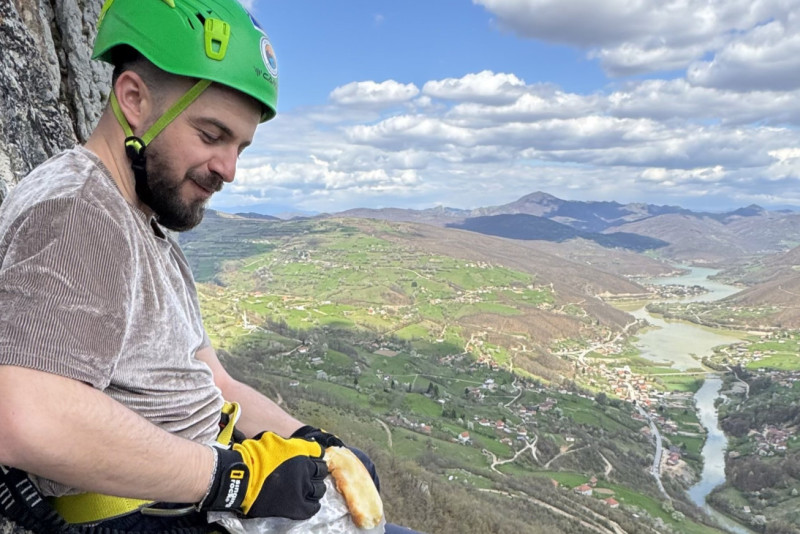 "Ne postoji slađi, ali ni opasniji zalogaj. Dobar burek ne bira ni mesto, ni vreme. Za ovu zahtevnu Via Ferratu potrebni su dobra volja, snaga i izdržljivost, moralo je i nešto da se prezalogaji", rekao je kroz osmeh planinar Ernes Gusinac iz Tutina za RINU.