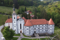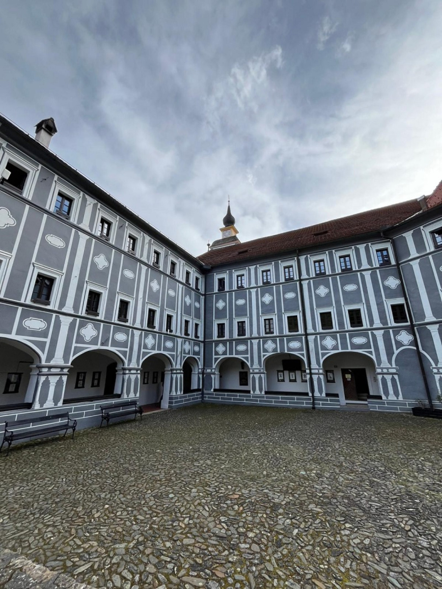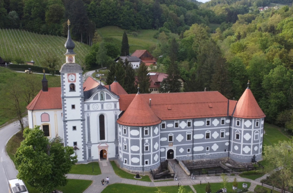"Na ovom mestu postoji dvorac, koji se pominje još 1015. godine kao letnjikovac pilštajnskih grofova koji su ga i izgradili. Dvorac je menjao vlasnike i nakon 500 godina preuzela ga je nemačka gorfovska familija Tatenbah. Tadašnji frof Hans ili po našem Ivan Tatenbah dvorac je preuredio i od tada do danas on izgleda ovako. On ga je preuredio u renesansni stil 1550. godine. Dvorac je tada utvrđen sa četiri odbra,bene kule i kanalom sa vodom koji ga je okruživao. To je učinjeno kako bi se odbranili od Turaka koji su ovim predelima prolazili od juga ka severu na svom putu ka Austriji i Beču. Međutim, istorija nam govori da ta odbrana nije bila ni potrebna, jer dvorac, sakriven u dolini Turci nisu ni pronašli", kaže jedan od malobrojnih monaha ovog manastira, fratar Jože Strojin.