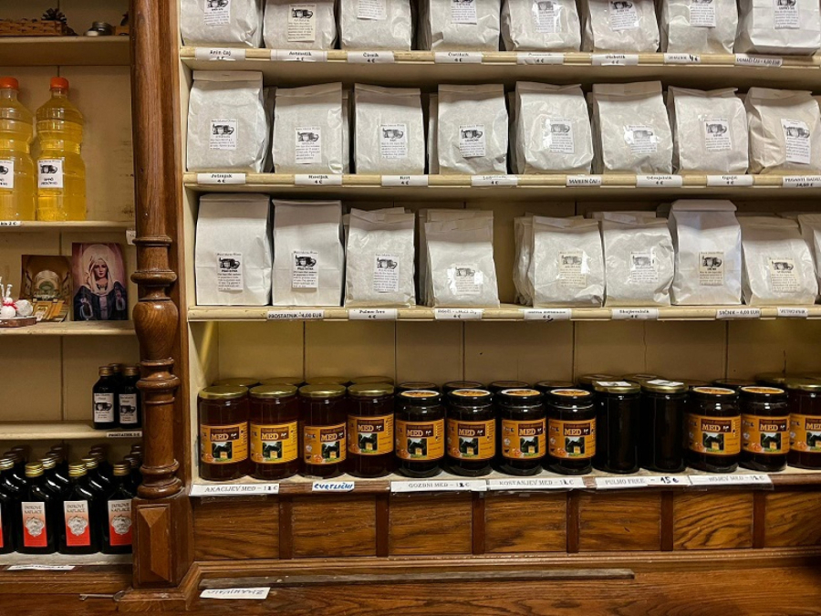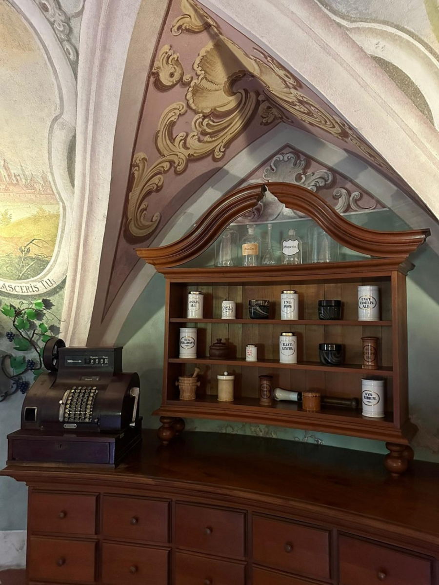"Ta prostorija se na latinskom nazivala infrimarija, što znači bolnica. Mi tu prostoriju u koju je tada bila smeštena apoteka nazivamo stara apoteka i služi samo kao muzej koji mogu posetiti svi koji dođu u samostan. Zašto je to bitno za nas i za Sloveniju? Kažu da je to najstarija očuvana samostanska apoteka u Sloveniji i treća u Evropi. Prva, odnosno najstarija se nalazi u Parizu, druga u Dubrovniku i treća je eto naša u Olimiji, u Sloveniji. Apoteka je osnovana u drugoj polovini 17. veka. Ne zna se tačna godina. Rekli smo da su Paulini došli 1663. godine tako da apoteka nije ranije osnovana jer se grofovi nisu time bavili, ali je ona sigurno starija od 300 godina", kaže fratar Jože Strojin.