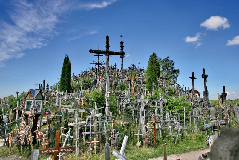 Međutim, tokom sovjetske okupacije zemlje od 1944. do 1990. godine, Litvanci su nastavili da postavljaju krstove u znak protesta protiv Rusa, koji su pomerali krstove i buldožerom uništili područje.