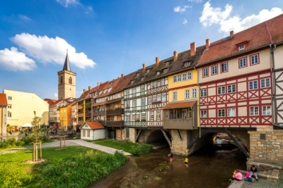 Ovaj fenomen u centralnoj nemačkoj pokrajini Tiringiji izgrađen je u 12. veku. U svojim počecima, most je bio samo drvena konstrukcija preko pritoke reke Gera, Breitstorm. Zbog opasnosti od požara, sto godina kasnije drvo je zamenjeno kamenom, ali vatra nije poštedela Kramerbruckes.
