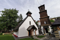 Jugozapadno od hrama, krajem 19. veka podignut je upečatljiv zvonik, koji svojom visinom od 18 metara nadvišava neveliko crkveno zdanje. Podseća na sahat–kule koje su bile tipične u orijentalnoj arhitekturi. Upravo po njemu ova građevina je jedinstvena i predstavlja posebno mesto u Užicu koje čuva duh starih vremena.