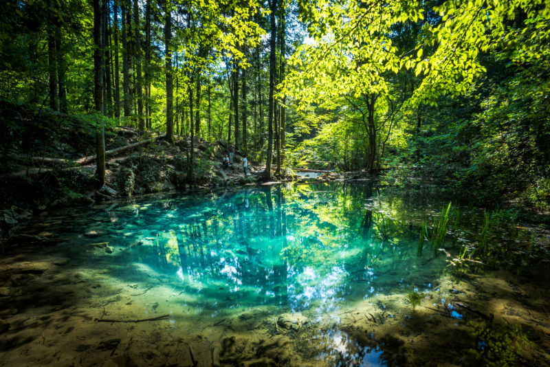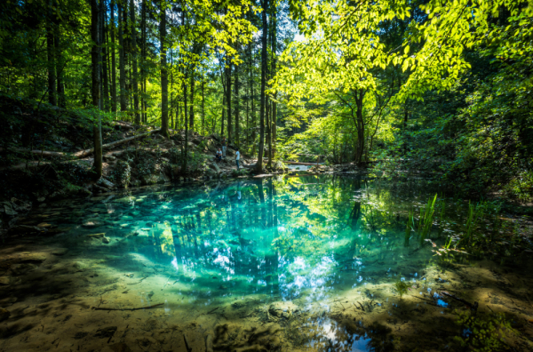 Ovo tirkizno plavo jezero je okruženo gustom šumom i stenovitim formacijama, i fascinira posetioce svojom nestvarnom i mističnom lepotom. Njegova kristalno čista voda, koja dolazi iz podzemnih izvora, deluje kao ogledalo prirodnog sveta, pružajući mir i spokoj svima koji ga ugledaju.