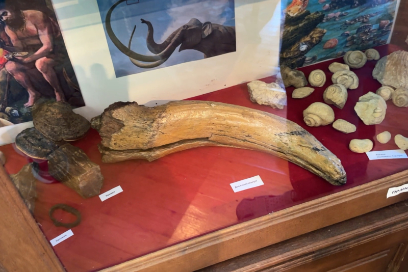 "Nešto što je najstarije u zbirci koju mi ovde imamo, svakako je kljova mamuta i u šali ja kažem da je mamut na ove prostore došao sam, ali i nismo daleko od istine. Kada smo sređivali naše etno domaćinstvo, imali smo građevinske radove i kada smo poručili kamion sa peskom, on je doterao materijal i kada je iskipao pesak, iz njega je ispala kljova, a pesak koji nam je stigao je iz reke Save što bi značilo da je on negde boravio na obalama ove reke", kaže domaćin Saša Drndarević.